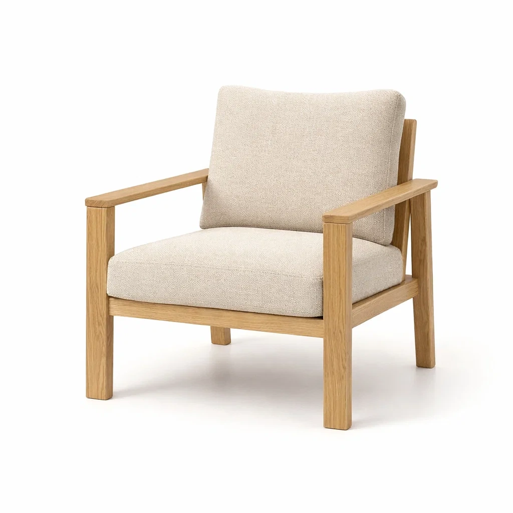 Materiale: Struttura in legno di quercia, cuscini in tessuto di poliestere, imbottitura in schiuma poliuretanica