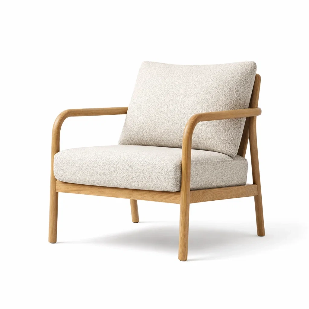 Poltrona in Legno con Rivestimento in Poliestere Beige