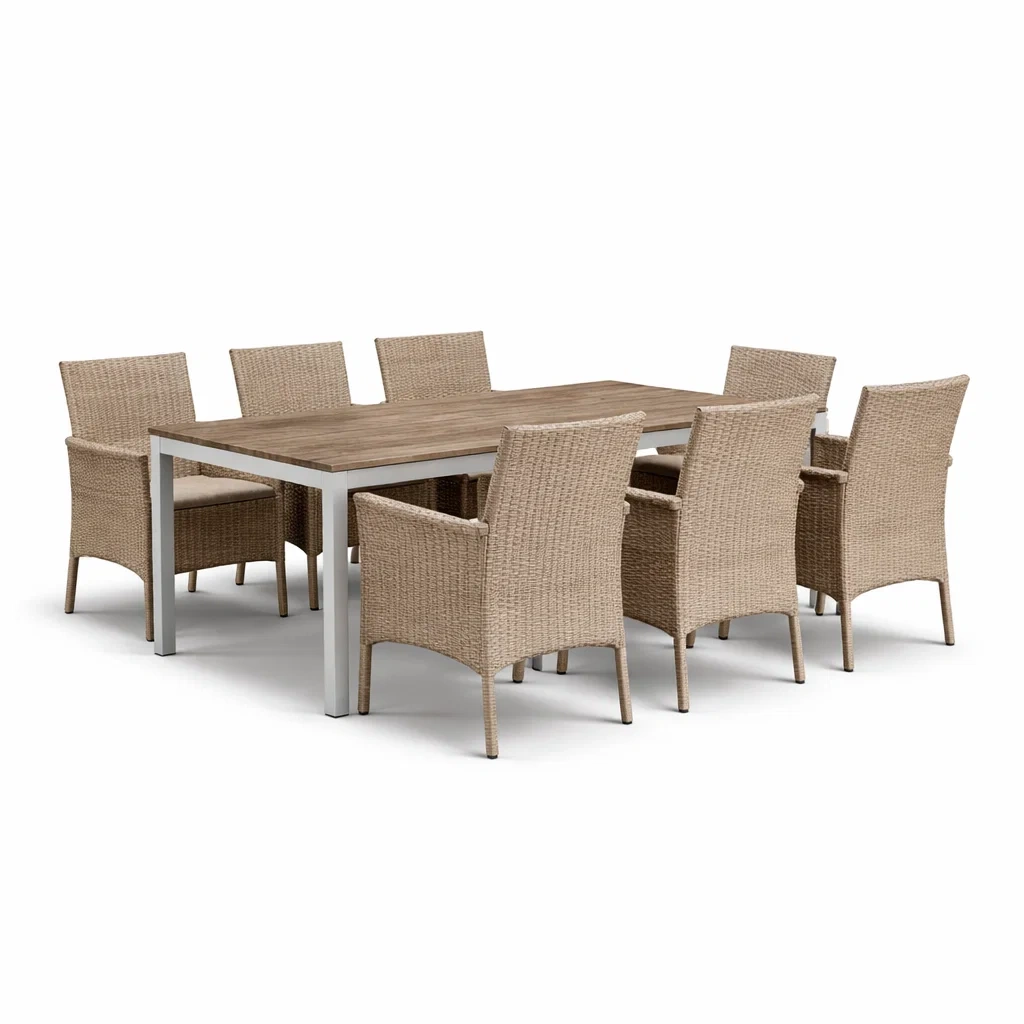 Set da pranzo con Tavolo in Legno di Teak e Sedie in Rattan Sintetico