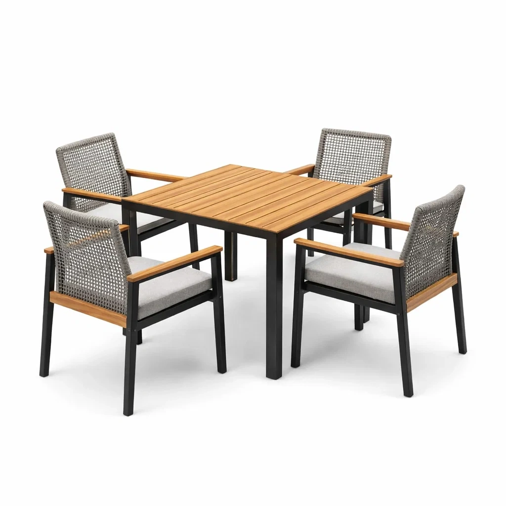 Set composto da un tavolo e quattro sedie.